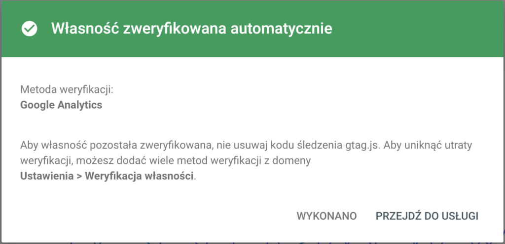 Pewnie już zauważyłeś/aś, że najprościej jest na początku dodać Google Analytics 🙂 wtedy konfiguracja Search Console jest już bajecznie prosta 🙂